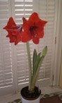 I suggest a Red Lion Amaryllis. I bought one a week ago at Trader Joe’s in the Back Bay for $6.99 (sorry no more left at that location) and have enjoyed watching it grow. Amaryllis love warm and sunny spots. It sure helps the spirit to see this red pop of color every day, especially when the temperature is below freezing and there are many inches of snow on the ground…. Just 57 days til spring!