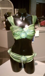 The winning bikini design was lovely. The judges comments were: “Stunning effect achieved with minimal natural composition.” That’s an understatement! The plant material is Aspidistra and Echeveria. Kudos to Julie Lapham from the Southborough and Worcester Garden Clubs. Just WOW!