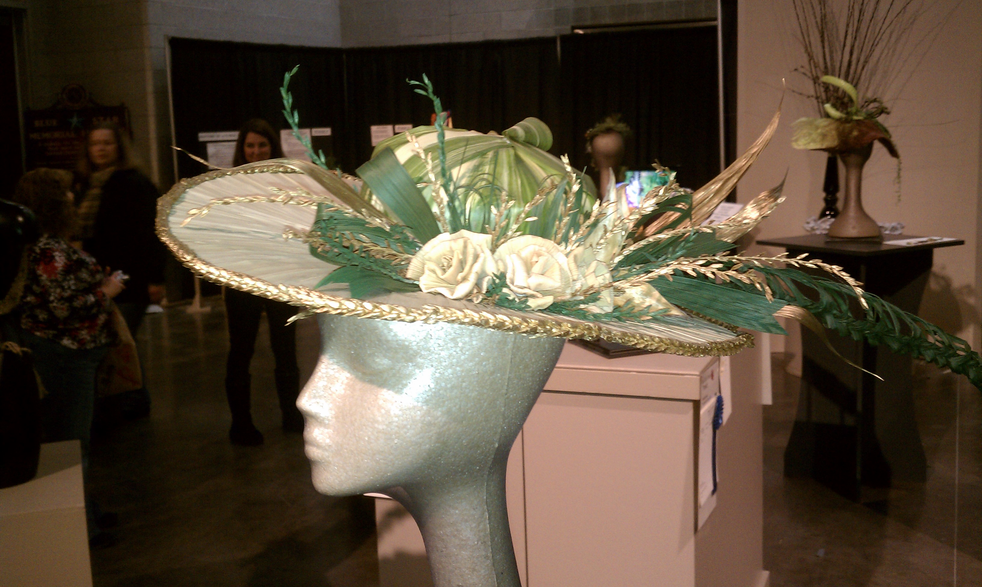 And the first place hat was lovely too. Made of Cast Iron Plant, Chinese Fan Palm, Rye, Corn, Milkweed and Areca Palm and Cryptomeria Japonica Cones. It would be great for an Easter parade!