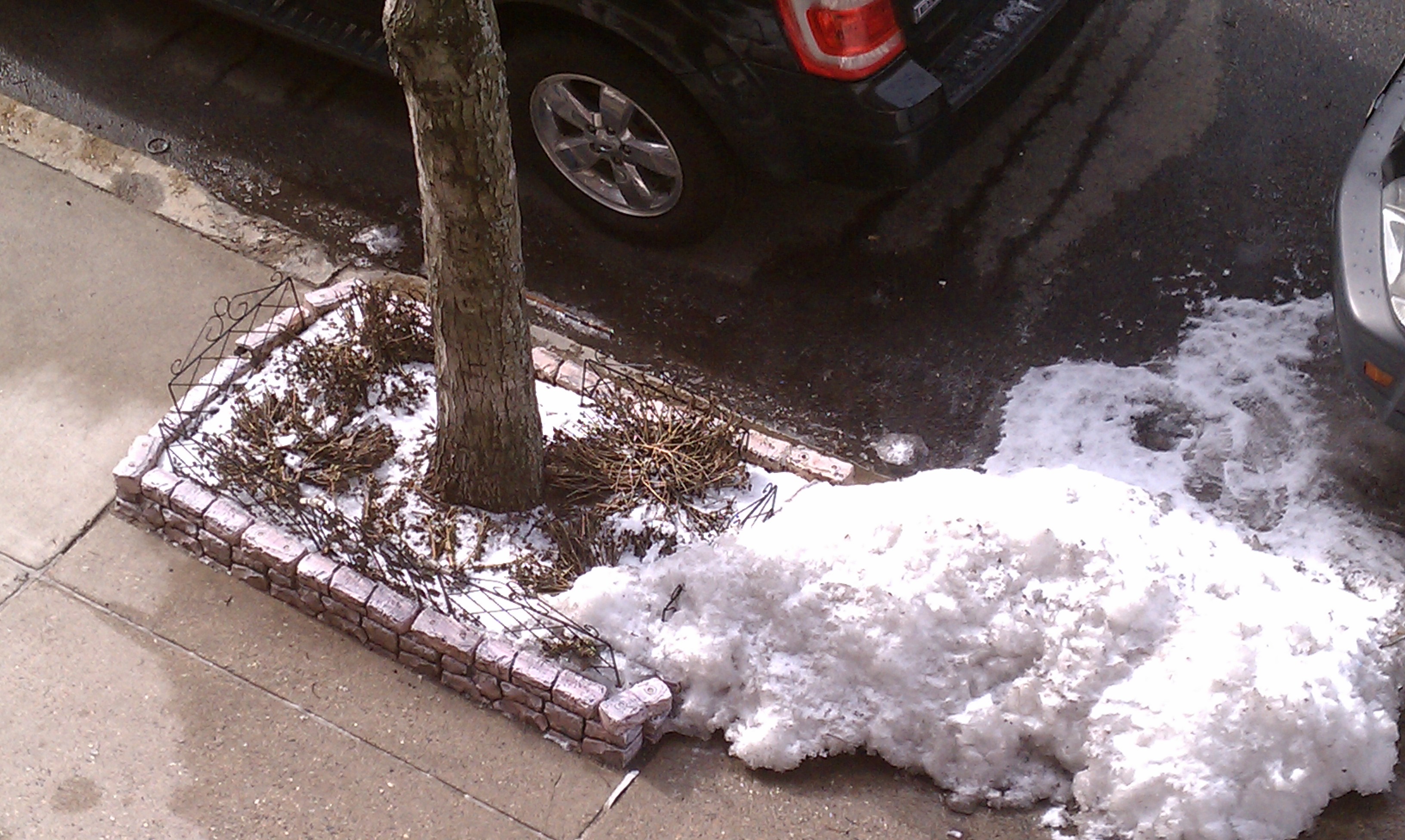 Yes, that’s my tree pit garden in the picture above. It looks so sad now but the good news is that it gets good sun on the left and gets decent overall sun all day long. Big thanks go out to Tom Smarr from the Rose Kennedy Greenway for sharing this tip!