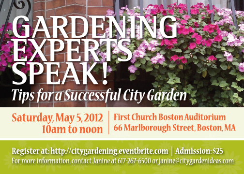 Sorry, you missed it! The Saturday, May 5, 2012 was a fun and inspirational gardening workshop! Two gardening experts – Ellen Abdow from Perennial Gardens and Tom Smarr from The Garden Concierge – offered their insights and advice on creating a wonderful garden space in the city. Just click to see Ellen create a container garden right before our eyes. Tom offered gardening basics on soil, sunlight, tools and more! Sign up to receive an email on our next workshop.